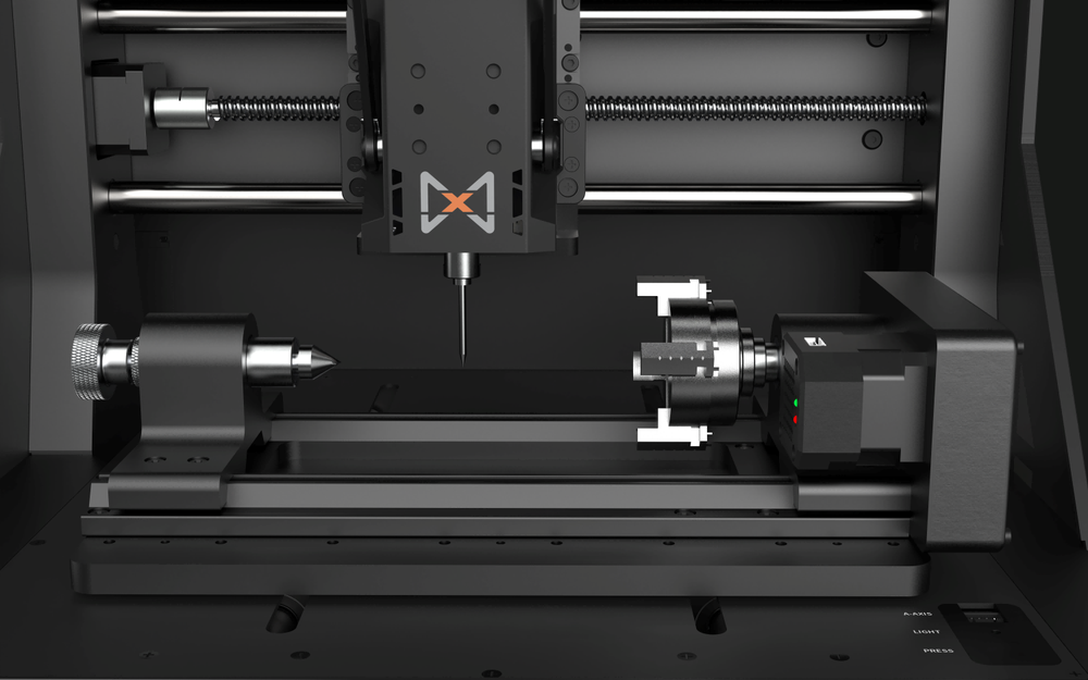 HiMill supports a Fourth-axis rotary attachment for full 3D machining,enabling the precise production of complex geometries such as cylin.drical components, gears, and detailed models. lts rigid structure andhigh-accuracy motion control ensure smooth, reliable performance foradvanced projects.